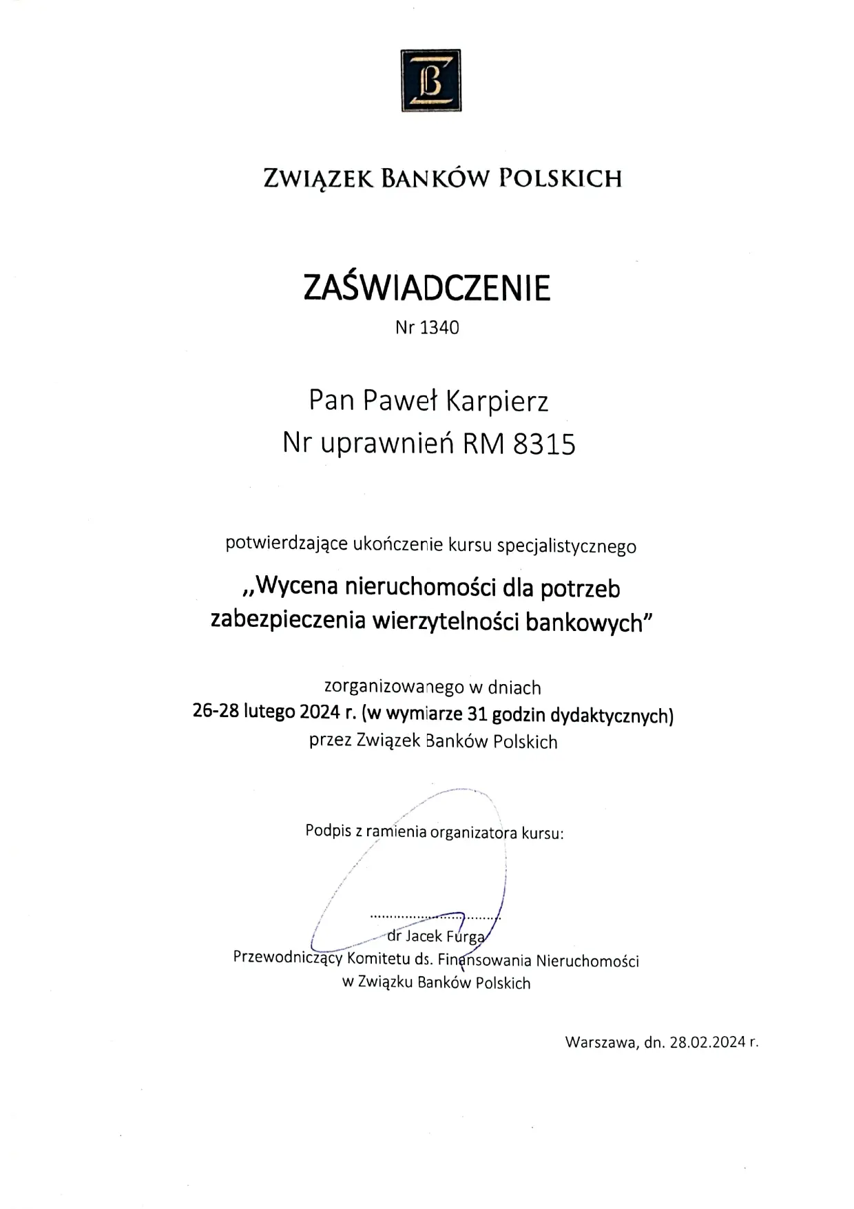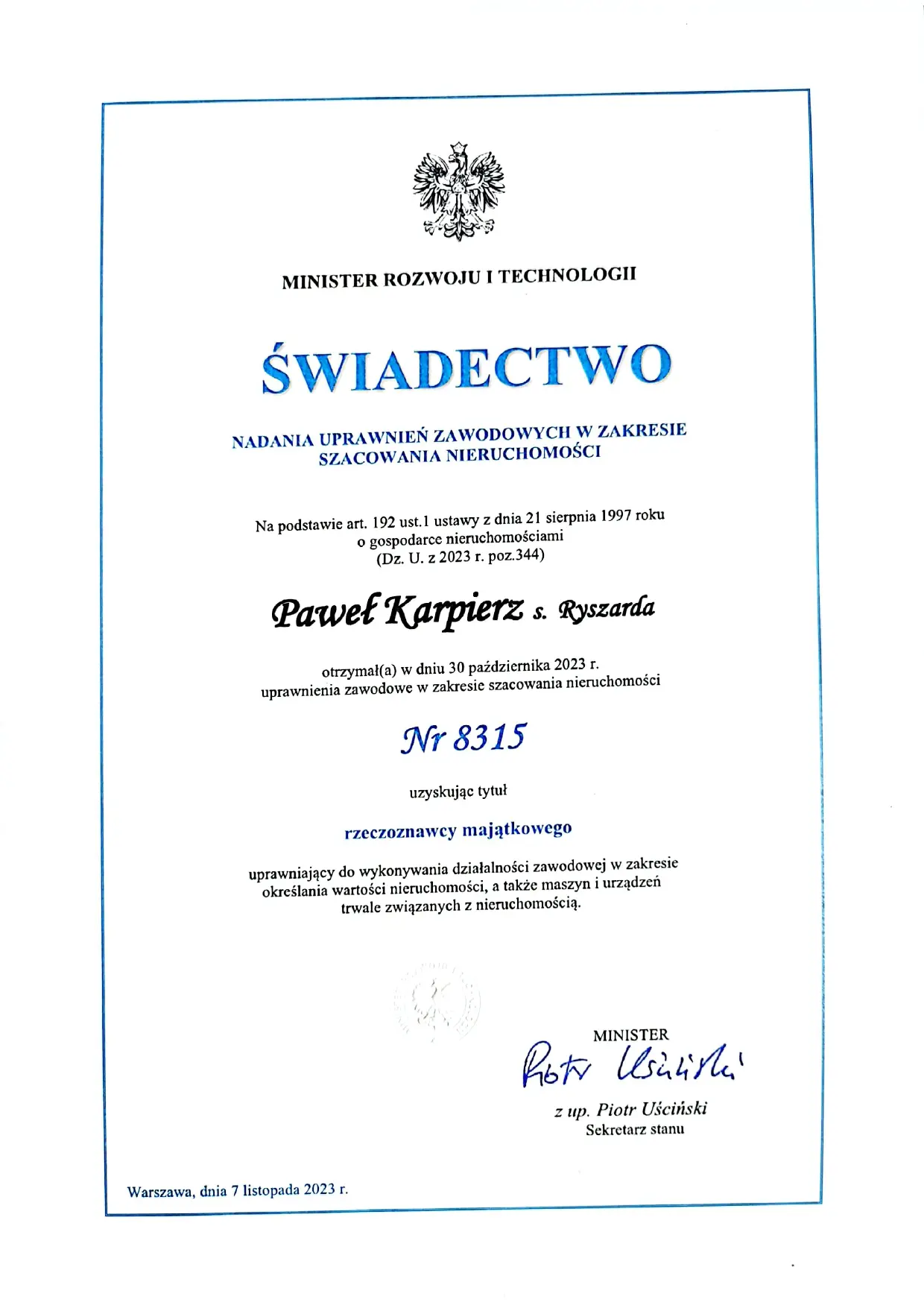 Jestem licencjonowanym rzeczoznawcą majątkowym i stale podnoszę swoje kwalifikacje, uczestnicząc w szkoleniach i kursach z zakresu wyceny i prawa nieruchomości, by zapewnić usługi na najwyższym poziomie. Moje podejście do pracy charakteryzuje się indywidualnym traktowaniem każdego zlecenia, dokładnością oraz zaangażowaniem. Wierzę, że transparentność, etyka zawodowa i nieustanne dążenie do doskonałości są kluczem do budowania trwałych relacji z klientami.